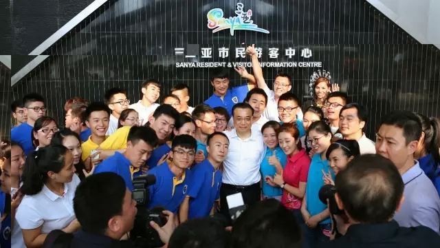 国务院总理李克强在三亚考察期间同在校学生合影留念