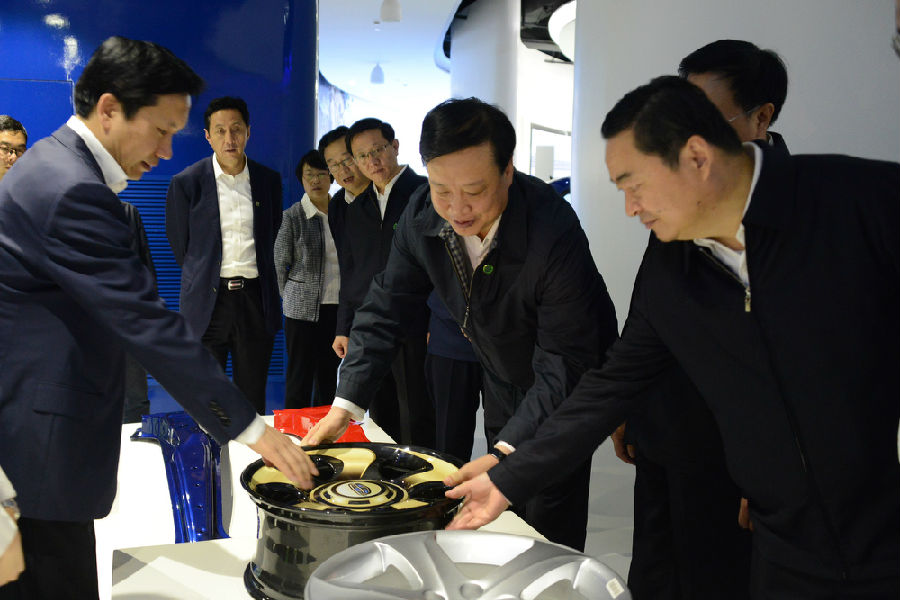 在轻量化展区,代表团成员亲自体验了金年会轻量化工作取得的成果,聆听了讲解员介绍金年会在减轻车身重量、降低油耗的同时,提升动力性和制动性所做出的努力。